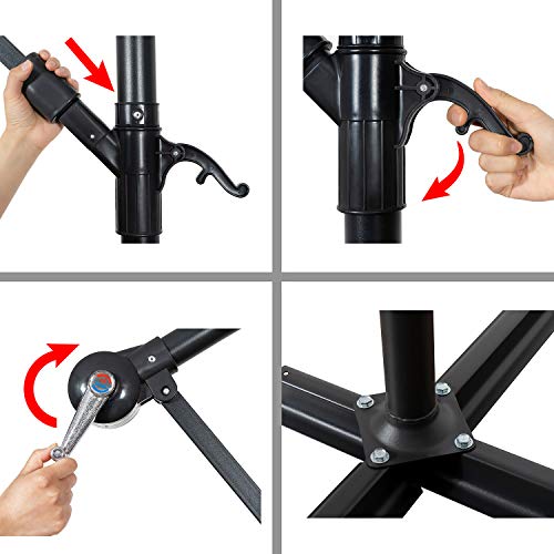 Der robuste Schirmmast besteht ganz leichtem, rostfreiem Aluminium und kann für den praktischen Transport einfach zerlegt werden. Der Ampelschirm steht sicher auf dem mitgelieferten Fußkreuz und kann überall platzsparend positioniert werden.