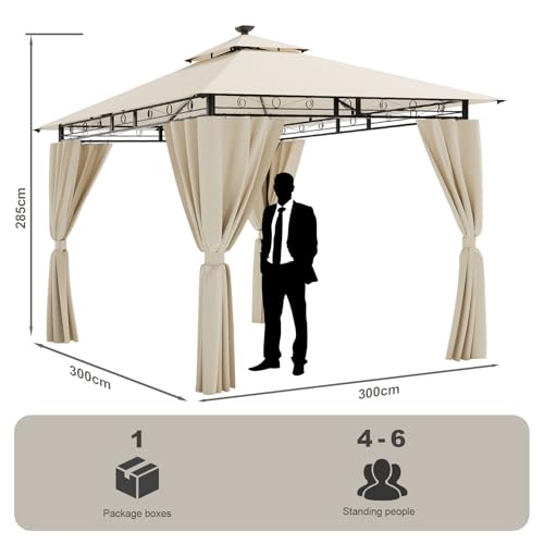 ✅【Party Pavilion for Gathering】 Das 3*3m große Zelt eignet sich für kleine Familientreffen von 4-6 Personen, um die Freizeit mit Freunden und Verwandten zu genießen und das Gefühl der Atmosphäre zu tauschen, das Zelt ist 285cm hoch und bietet en masse Platz für Aktivitäten.Rostbeständige, galvanisch beschichtete Legierungen sorgen für eine längere Produktlebensdauer, so dass Sie Wartungskosten sparen und gleichzeitig einen lang anhaltenden Abschirmung genießen können.