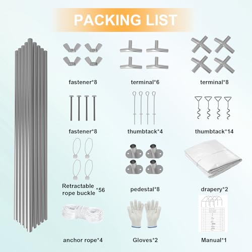 【Schnelle Montage, problemlose Erfahrung】Das Devoko Partyzelt ist so konzipiert, dass es leicht aufzubauen ist, mit klaren und leicht verständlichen Anweisungen. Der Stahlrahmen ist nahtlos mit Verbindern verbunden und das PE-Gewebe ist schnell mit Verbindungsschlaufen und Bändern fixiert, so dass der Auf- und Abbau schnell und reibungslos vonstatten geht.