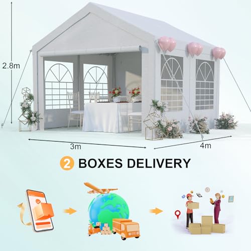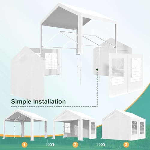 【Humanisierte Details und durchdachtes Design】Das Partyzelt ist mit 2 transparenten PVC-Fenstern auf beiden Seiten ausgestattet, die viel natürliches Licht hereinlassen, während 2 doppelte Reißverschlusstüren für einen einfachen Zugang konzipiert sind. Das innovative, schräge Dach verhindert effektiv die Ansammlung von Wasser und bietet so zusätzlichen Schutz für Ihre Aktivitäten.