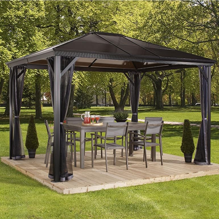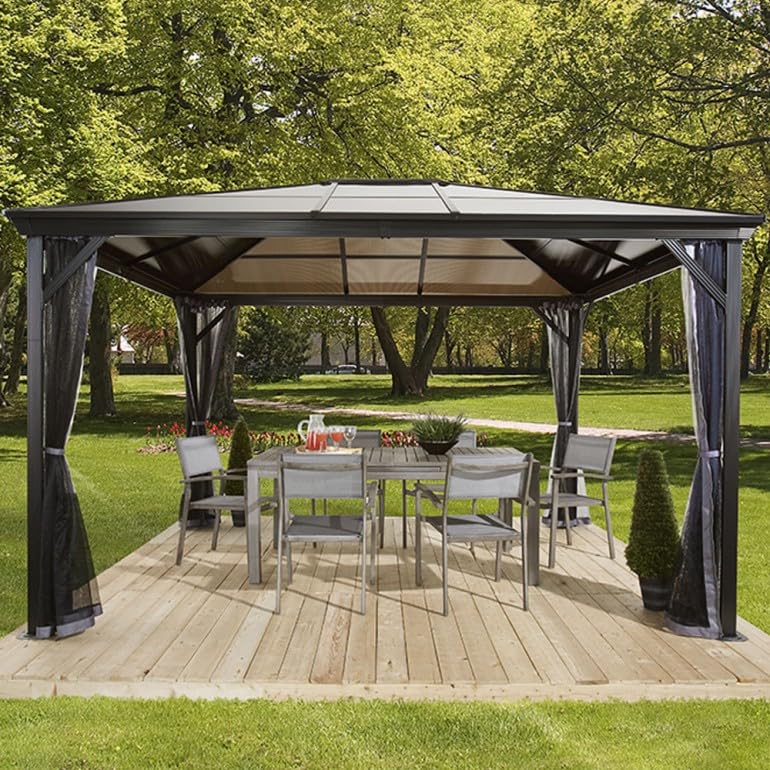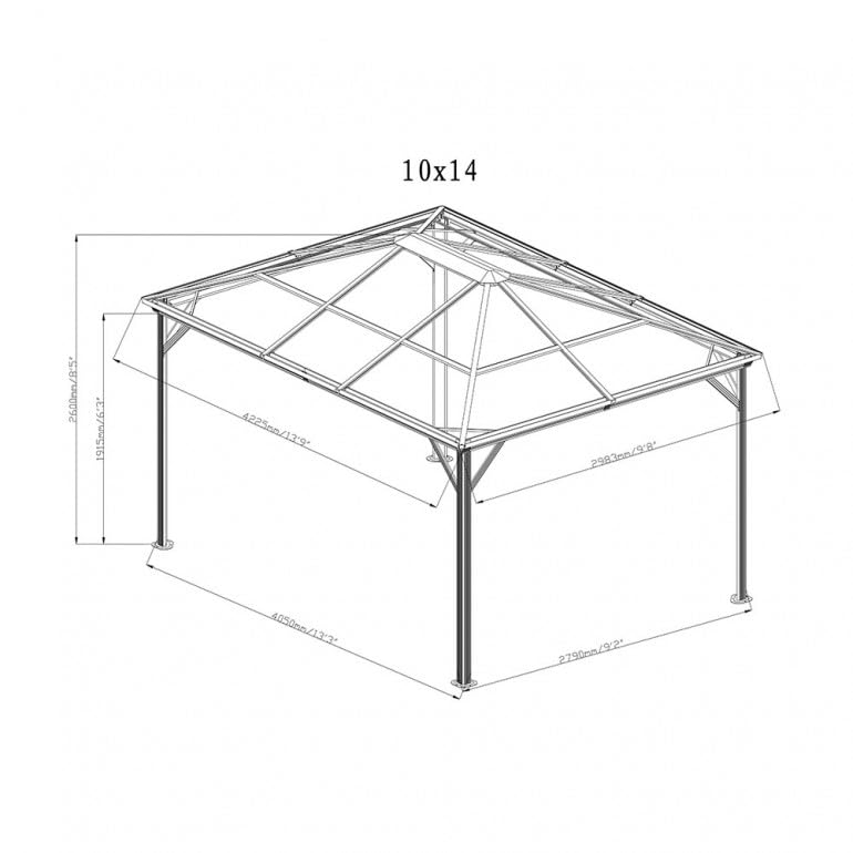 DIGIPLASTICS Ezooza Pavillon aus Aluminium und Abdeckung aus widerstandsfähigem Polycarbonat Verona, 10 x 14 Zoll, 298 x 423 x 261 cm