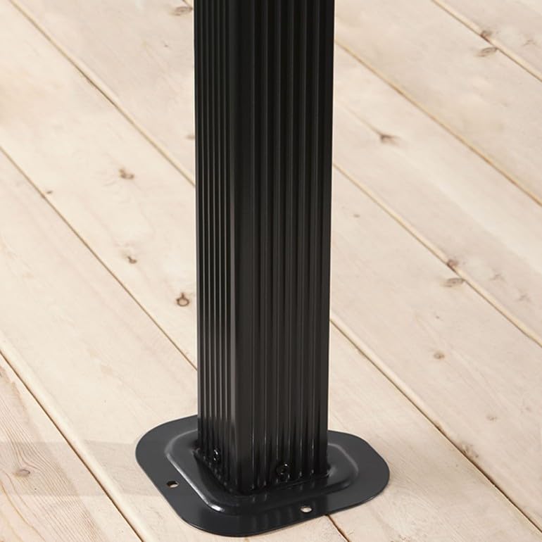 Einfache Montage durch 2 Personen mit Standard-Werkzeug und detaillierter Stück-für-Stück-Anleitung. Aufbauzeit ca. 4-5 Stunden Die Basis des Pfostens hat 3 Löcher, was bedeutet, dass Sie 12 Schrauben und Dübel benötigen, um sie am Boden zu unterstützen. Denn Untergrund empfehlen wir eine ebene Fläche leer Holz, Beton oder Pflastersteinen.
