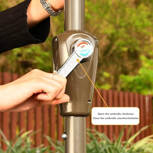 【Handkurbel-Design】 Der Sonnenschirm für den Außenbereich verfügt über ein Handkurbel-Design, das sich durch einfaches Schütteln der Schirmoberfläche leicht öffnen und abstrahieren lässt und so ein bequemes Sonnenschutzerlebnis für Picknicks im Freien, Camping, Freizeitaktivitäten im Innenhof und Terrassentischschirme bietet.