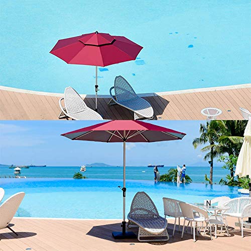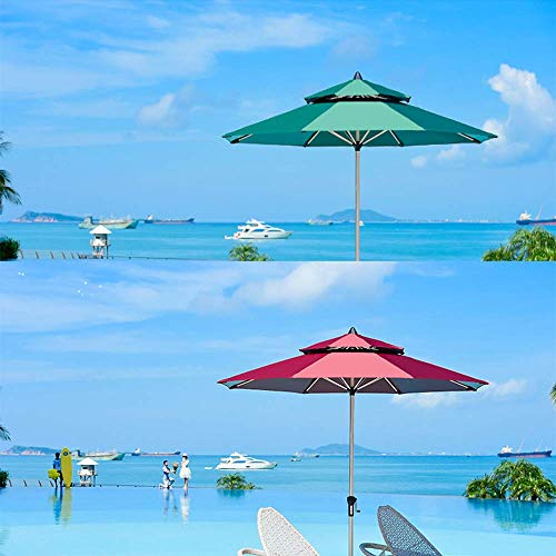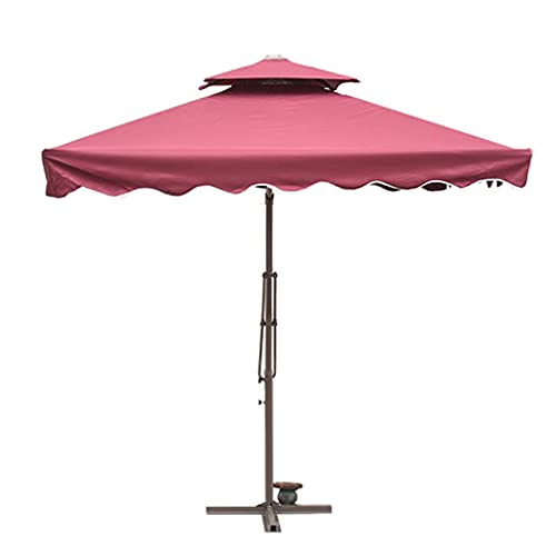 Doppel-Garten-Sonnenschirm aus Aluminium, 2,7 m, mit Kurbel, wasserdicht, verblasst nicht, 8 Rippen für Terrasse/Balkon/Terrasse/Markt/Strand – ohne Sockel (rote Doppeldecke)