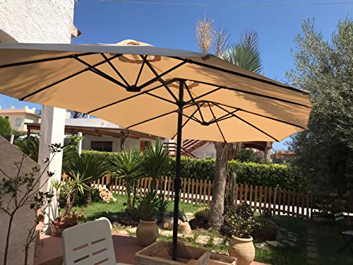 Terrasse, Naturell, Datenbasis, dieser doppelte Sonnenschirm ist anständig zum Abschirmung vor UV-Strahlen.