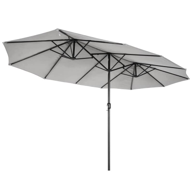 Doppelter Sonnenschirm ganz Leichtmetall mithilfe Bespannung ganz Polyester, aus der Mode, 180 g/m². Terrasse, Wesen, Datenbasis, dieser doppelte Sonnenschirm ist ideal zum Abschirmung vor UV-Strahlen. Maße: 450 x 265 x 240 cm. Mastdurchmesser 48 mm. Sockel außerdem Ständer sind nicht im Lieferumfang enthalten.