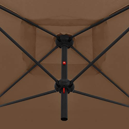 Dieser elegante Abschrift-Sonnenschirm ist perfekt, um Schatten zu spenden und Sie vor den schädlichen UV-Strahlen der Sonne zu schützen. Das unverwechselbare Doppelschirm-Design macht ihn zum Blickfang in Ihrem Hinterhof! Ganz UV-beständigem und verblassfestem Polyester gefertigt, bietet dieser Sonnenschirm optimalen Abschirmung gegen schädliche UV-Strahlen der Sonne und ist dessen ungeachtet leicht zu reinigen. Er verfügt über einen stabilen Kreuzfuß, der für erhöhte Haltbarkeit sorgt. Dank des robusten, pulverbeschichteten Masts und der starken Schirmrippen ist der Sonnenschirm außergewöhnlich gefestigt und langlebig. Dieser Sonnenschirm lässt sich dank des Kurbelmechanismus einfach öffnen und konkludieren. Der Aufsatz ist leicht zu montieren. Hinweis: Dieser Aufsatz sollte NIEMALS bei rauen Wetterbedingungen, qua starkem Wind, Regenschauer, starkem Schneefall, Sturm, Hagel, usw., genutzt werden.