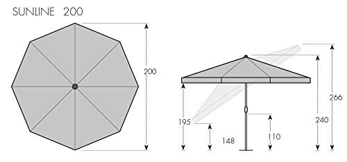 Doppler Absolut wetterfester Gartenschirm Sun Line III 200 UV-Schutz 50 Plus, Farbe anthrazit