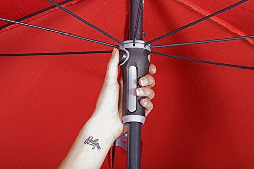 Der Knicker und die Höhenverstellung sorgen für den perfekten Sonnenschutz auch bei tiefstehender Sonne