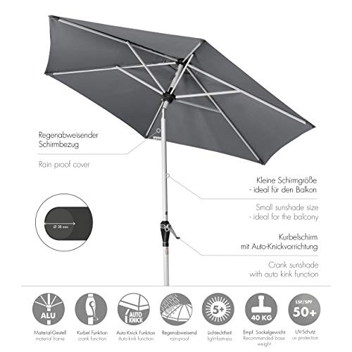 Aufgrund der kleinen Schirmgröße ist der Sonnenschirm aus Aluminium ideal für den Balkon