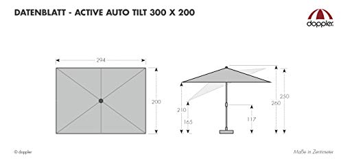 Mit diesem großartigen Sonnenschirm Active Auto Tilt der Marke doppler werden Sie Ihre Pläsier haben! Dank der komfortablen Auto-Knickvorrichtung bedienen Sie den Kurbel Schirm mühelos. Mit der innovativen Auto Tilt-Umwandlung lässt er sich wohlig neigen, indem Sie die Kurbel einfach weiterdrehen. Der Bezug ist alle regenabweisendem Polyestergewebe mit guter Lichtechtheit und gutem UV-Abschirmung von 50+ gefertigt. Zusätzlich ist dieser abnehmbar und waschbar.