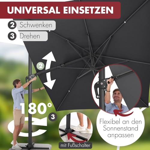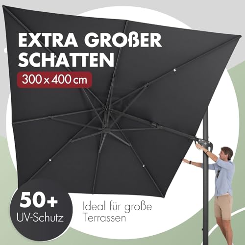 Doppler großer Pendelschirm Jack 400x300cm Anthrazit I Sonnenschirm für Terrasse I Ampelschirm knickbar I Kurbelschirm UV-beständig aus Aluminium I Multifunktions-Pendelschirm, Anthrazit