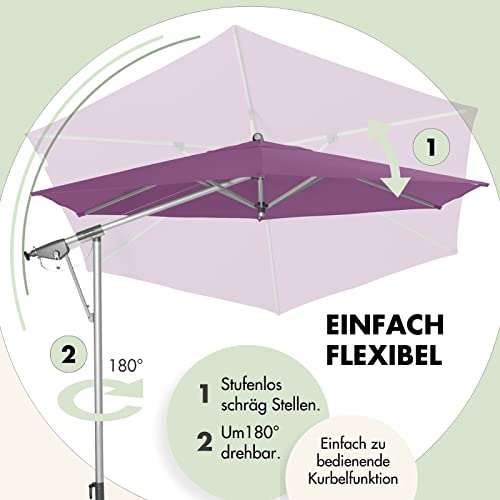 BEQUEME NUTZUNG – Die Kurbelfunktion ermöglicht eine einfache Bedienung. Mit Bezug auf den Schwenkmechanismus kann das Schirmdach stufenlos abgeschrägt gestellt werden & ist um 180° drehbar.