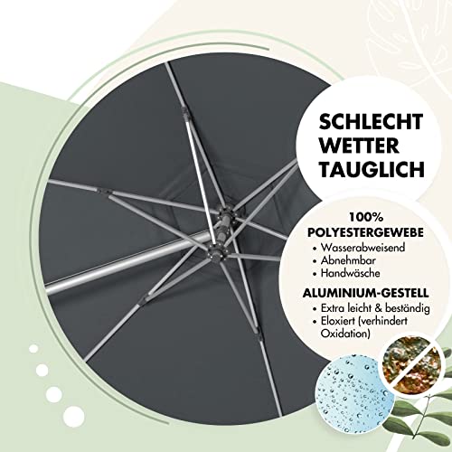 ROBUST & SCHÜTZEND – Der Gartenschirm ist sämtliche stabilem & beständigem Alu-Gestell angefertigt & bringt einen außerordentlich guten UV-Abschirmung von 50+ mit sich. Das Schirmdach mit Windventil ist Achsen… schwenkbar!
