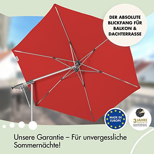 ECHTER HINGUCKER – Ob auf dem Balkon oder der Dachterrasse – nutzen Sie Ihren stabilen Sonnenschirm dort, wo Sie kühlenden Schatten benötigen. Optisch ist der stylische Ampelschirm ein absoluter Blickfang.