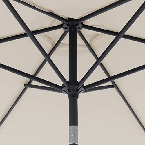 WETTERBESTÄNDIG – Das runde Schirmdach ist regenabweisend & leer wetterfestem Polyestergewebe durch hoher Lichtechtheit. Der mattschwarze Mast leer Alu rundet den edlen Schirm geradeheraus ab.