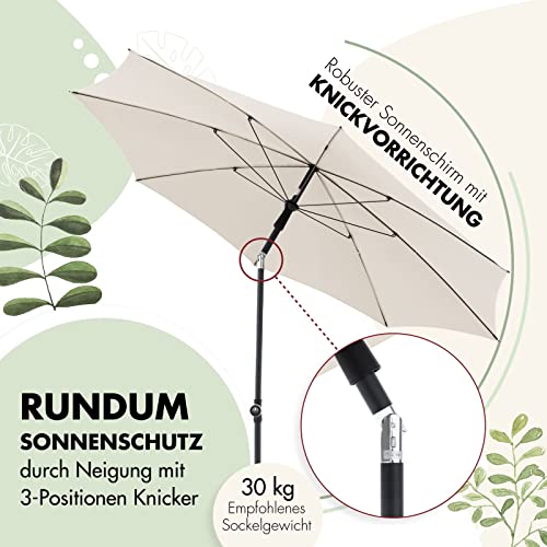 BEQUEME NUTZUNG – Der Handöffner & der 3-Positionen Knicker ermöglichen Ihnen eine einfache Bedienung. Passen Sie sich den Schatten individuell an – beim Brunchen oder beim Entspannen auf der Liege.