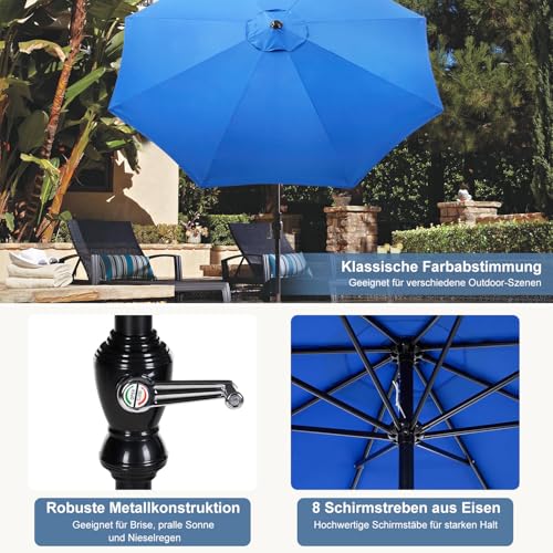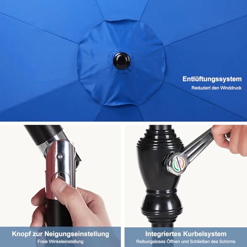 DUMOS Sonnenschirm Kurbelschirm Marktschirm UV Schutz Abdeckung Knickbar Alu Rund Balkon Terrasse Garten Balkonschirm