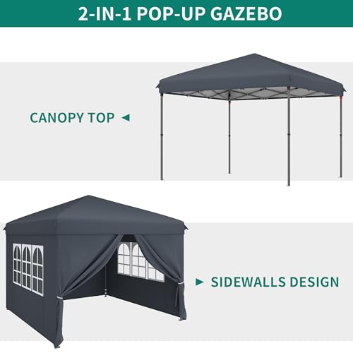 DWVO 3x3Meter Outdoor Pop-Up Gazebo with Sides and Windows All-Season Waterproof Folding Camping Gazebo – Garden Canopy with Anti-UV Protection, Adjustable Height, Stakes, Rope & Carry/Weight Bags