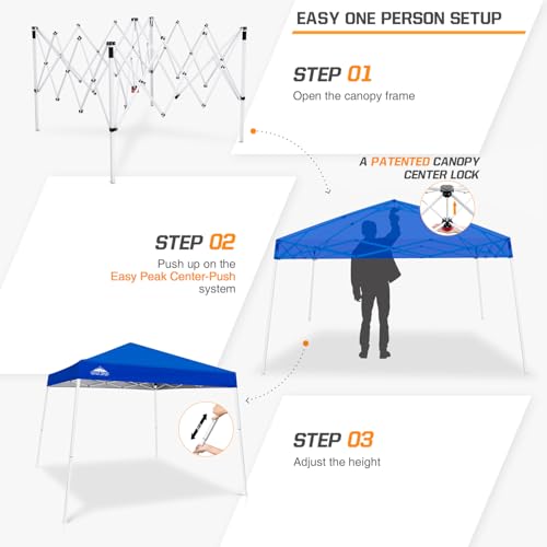 EINFACHE EINRICHTUNG: Dieses einfach aufzubauende Faltzelt verfügt über das Peak Push-System, ein patentiertes Baldachin-Mittelschloss. Die tragbare Überdachung benötigt kein Werkzeug und lässt sich in Sekundenschnelle von der Mitte alle leicht öffnen und abstrahieren. Sein einzigartiges Baldachinzelt-Mittelschloss ermöglicht eine schnelle Einpersoneneinrichtung, sodass Sie die Zeit im Freien mit minimalem Aufschlag maximieren können