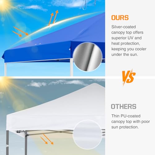 VERSTELLBARE BEINE: Leicht einstellbare 3-stufige Drucktaste teleskopierbare Stahlbeine. Das Design der geraden Beine bietet maximale Absicherung, so dass 6 oder mehr Personen die geräumigen 100 Quadratmeter Schatten genießen können. Die Baldachinplatte hat auch 2 Tüllen an jeder Seitenkante, um den Wasserabfluss zu verstreben und ein Ansammeln zu verhindern.