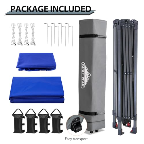 Eagle Peak ist eine führende Pop-Up-Marke für Baldachin und Pavillon, die innovatives Produkt mit Benutzerfreundlichkeit, kombiniert mit Premium-Design-Ästhetik liefert. EAGLE PEAK ist vertikal integriert und einer der größten Pop-Up-Vordachhersteller der Welt. Wir investieren in unser Produkttest- und Produktinnovationslabor, um sicherzustellen, dass unser Produkt Industriequalitätsstandards und Anforderungen erfüllt und übertrifft. Wir sind unermüdlich in unseren Bemühungen, neue Wege zu innovieren, um Ihnen sichere, problemlose Qualitätsprodukte zu bieten. Unsere internationalen und nordamerikanischen Produktentwicklungs- und Designteams ackern unermüdlich daran, den Status Quo zu umschreiben und Ihnen ein besser aussehendes und besser funktionierendes Produkt zu bieten. Vielseitig einsetzbar: Schulveranstaltungen, Wochenend-Musik-Festivals, Camping-Ausflüge, Heckklappenpartys, Hinterhofpartys, Sportveranstaltungen im Freien, Strand, See, Fluss und mehr. Einrichtung: Verlängern Sie einfach den Stahlrahmen, stützen Sie den Baldachin, heben Sie das Mittelschloss an und verlängern Sie die Beine (ca. 2/3 Position). Lieferumfang: 30 x 30 cm Betthimmel-Rahmen. 33 x 33 cm Überdachung. 1 x Tasche mit Rädern. 8 x Heringe. 4 x Abspannseile.