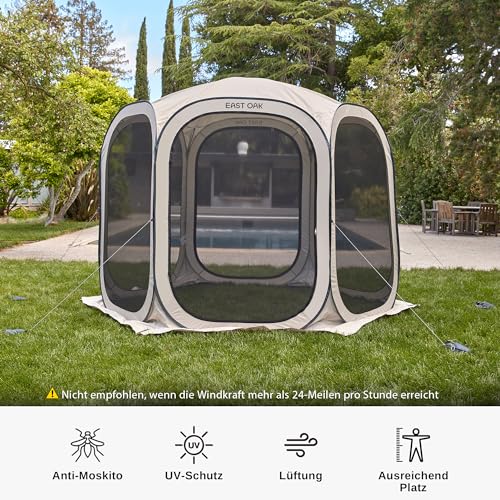 Ungeziefersicherer & belüfteter Raum: Das Pop-Up Iglu Zelt von EAST OAK verfügt über ein 4-seitiges B3-Feinmaschendesign für eine perfekte 360°-Belüftung, kann Sie vor Moskitos und anderem Ungeziefer schützen, und bietet UPF 50+ UV-Schutz.