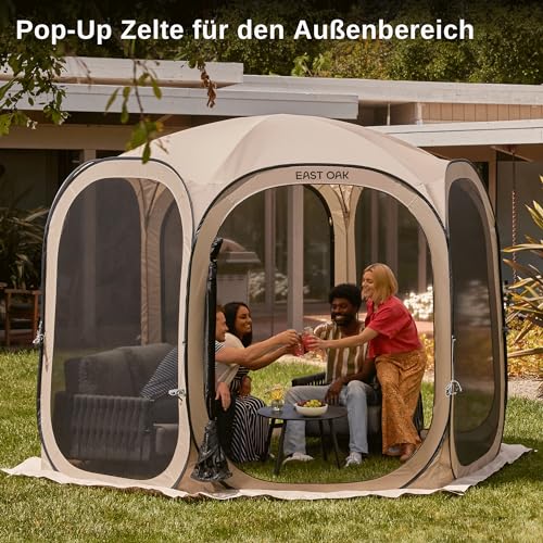 EAST OAK Pop Up Zelt, Pavillon 3×3m, Wurfzelt Große für 4-6 Personen, Gazebo für Camping, Garten, Terrasse, Stoffe Wasserdicht, UPF 50+ UV Schutz, 360° Belüftung, Anti Moskito, mit Tragetasche, Beige
