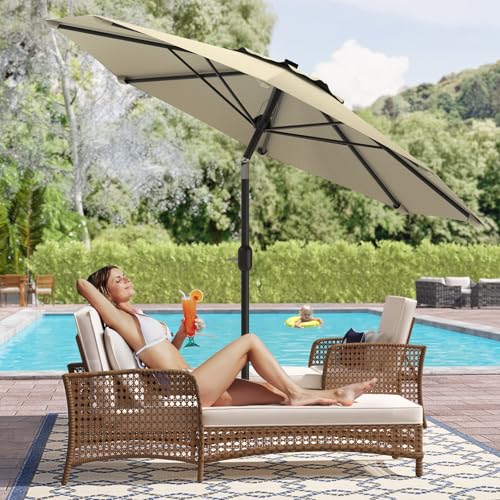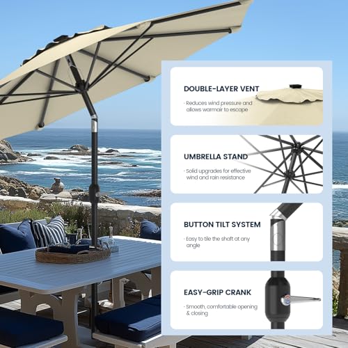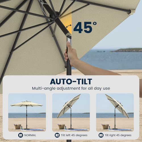 Eldzenith Sonnenschirm Ø300 cm Sonnenschirm Balkon mit Kippbarem Winkel Aluminium Sonnenschirme mit Kurbelbedienung