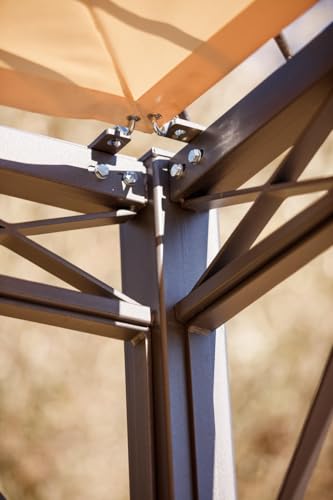 Größe und Montage – Der Pavillon Bolzano misst 2,08 m x 2,08 m. Die Gesamthöhe beträgt 2,69 m. Mit einem Gesamtgewicht von 181 kg ist der Pavillon besonders stabil. Die Montage können Sie selbst vornehmen, sie gelingt dank beiliegender Montageanleitung schnell und einfach. Idealerweise werden Sie von zwei weiteren Personen beim Aufbau des Pavillons unterstützt.
