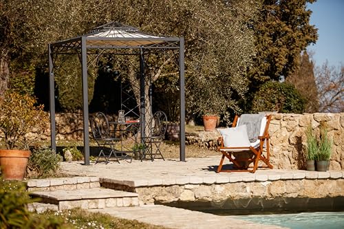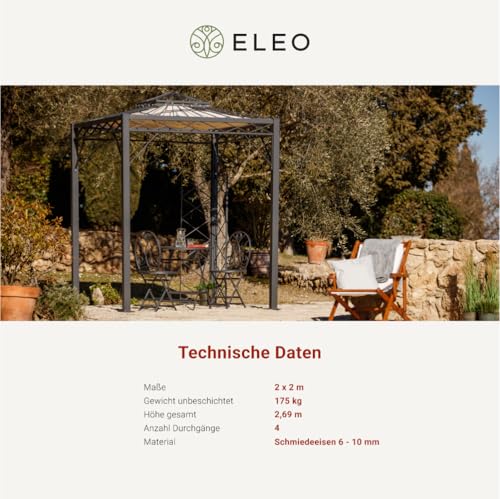 Besonderer Charme für Ihren Garten – Der Pavillon Bolzano pulverbeschichtet in Schwarz bildet durch seine kompakte Größe und seine eckige Form ein harmonisches Highlight Ihres Gartens. Genießen Sie in den Morgenstunden Ihren ersten Kaffee oder verweilen Sie mit einem guten Buch unter dem Metallpavillon. Aus massivem Schmiedeeisen gefertigt überzeugt Bolzano mit Stabilität und Langlebigkeit, sodass Sie sich viele Jahre von diesem Blickfang verzaubern lassen können.