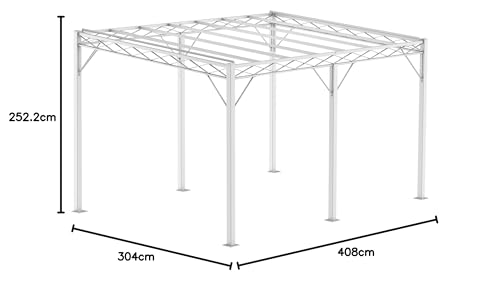 Größe und Montage – Die Pergola Sicilia misst 4,08 m x 3,04 m. Die Gesamthöhe beträgt 2,52 m. Mit einem Gesamtgewicht von 275 kg ist die Pergola besonders stabil. Die Montage können Sie selbst vornehmen, sie gelingt dank beiliegender Montageanleitung schnell und einfach. Idealerweise werden Sie von zwei weiteren Personen beim Aufbau der Pergola unterstützt.