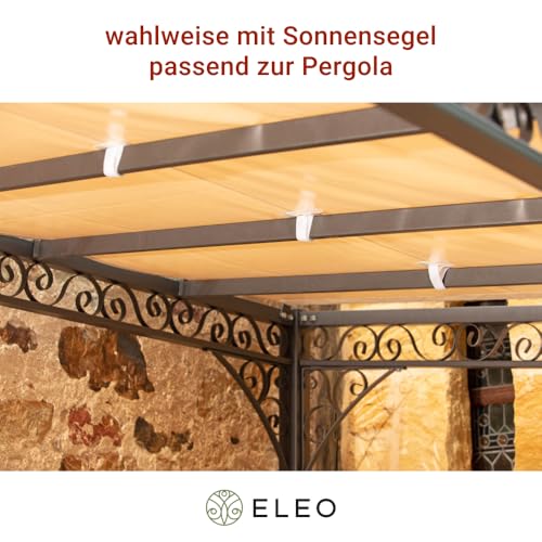 ELEO Pergola Sicilia weiß – eckig 3×4 m Anstellpergola handgeschmiedet Schmiedeeisen modern – Pavillon für draußen Metall stabil rostfrei pulverbeschichtet Weiss – für den Garten Winterfest