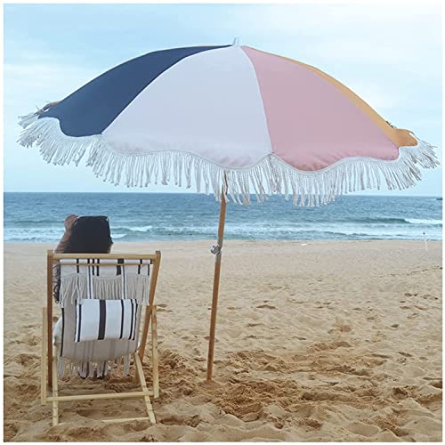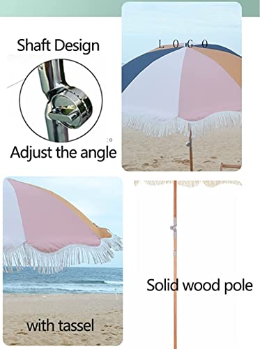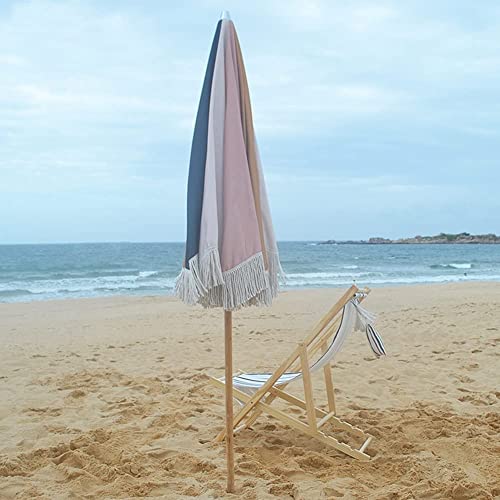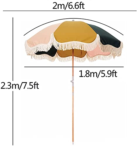 ELUKHT 200 cm Sonnenschirm für den Außenbereich, neigbar, Gartenschirm, Terrassenschirm mit Fransen, Sonnenschutz für Balkon, Pool, Holzstange