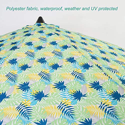 ELUKHT 2,7 m Sonnenschirm mit Kurbel und Baumblattmuster, kompakter Sonnenschutz für den Außenbereich, Terrasse, Aluminiumstange