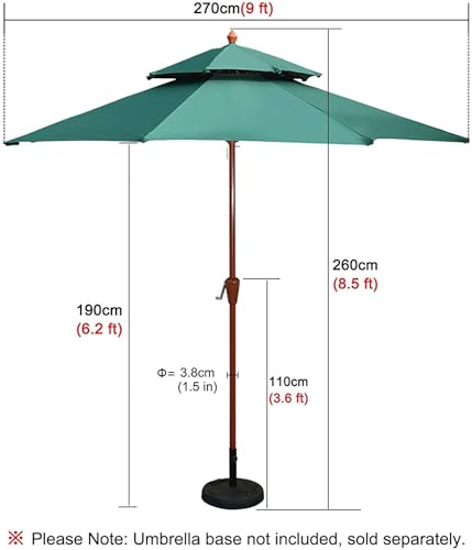 Gesamtmaße: Schirmdurchmesser: 270 cm; Stangendurchmesser: 38 mm; Fingerzeig: Der Schirmständer ist nicht im Lieferumfang enthalten.