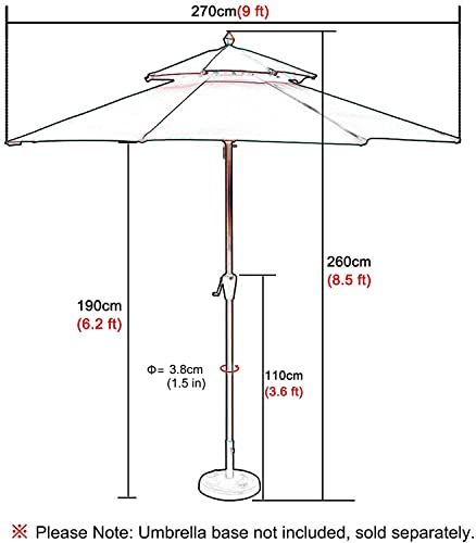 Gesamtmaße: Schirmdurchmesser: 270 cm; Stangendurchmesser: 38 mm; Empfehlung: Der Schirmständer ist nicht im Lieferumfang enthalten.