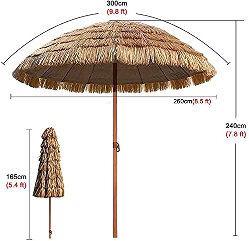 ELUKHT Terrassenschirme, 3 m, extra groß, wasserdicht, für den Außenbereich, Stroh, Strandschirm, neigbarer Stroh-Sonnenschirm