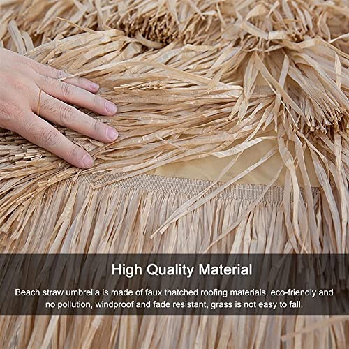 Wetter- und UV-geschützt: Der Strand-Strohschirm besteht aus künstlichen Strohdachmaterialien, umweltfreundlich und keine Verschmutzung, winddicht und lichtbeständig, Gras ist nicht leicht zu fallen, dauerhafte Haltbarkeit.