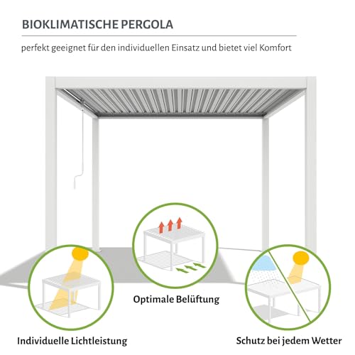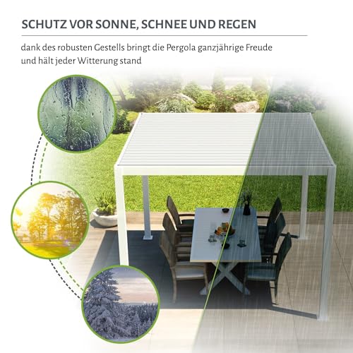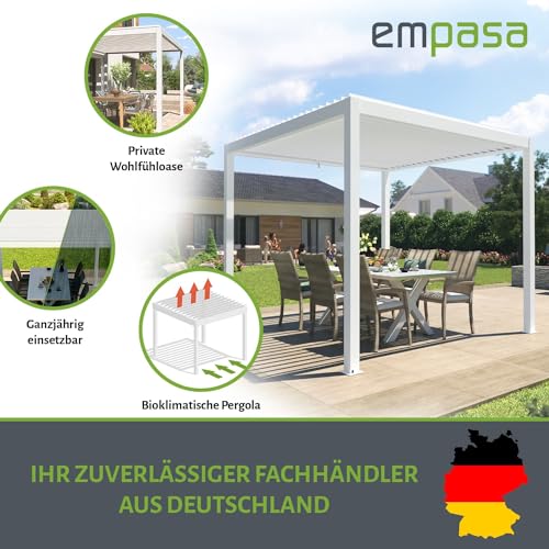 empasa Premium Pergola aus Aluminium Terrassenüberdachung mit Lamellendach aus Stahl ‚Zeus‘ Pavillon Gartenpavillon Terrassenpavillon Überdachung, freistehend, bioklimatisch, in Zwei Größen