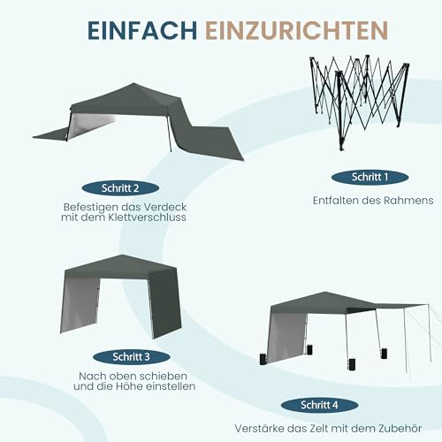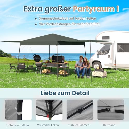 ✅ [Innovative, doppelseitig verstellbare Markise]: zwei 2×3 m große, erweiterbare Beschattungsflächen. Wurzelverstärkte Stützstangen können zwischen traditionellem Pavillon auch übergroßer Markise umgewandelt werden, die übrige Personen unterbringen können, um Grillparty zu genießen