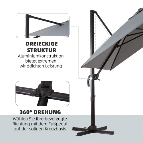 Der Schirm kann durch den Handkurbel für leichtes Aufspannen auf 5 Neigungswinkel eingestellt werden, und die Sonnenschutzwirkung wird durch die Bewegung des Sonnenwinkels nicht verringert. Ausrichten den Schirm je nach Sonneneinfall und vervollständigen den gewünschten Sonnenschutzeffekt nach Ihren eigenen Vorlieben. Der Fußhebel des Kreuzfußes können den Schirm unkompliziert um 360 ° gedreht werden.