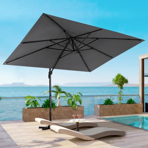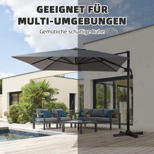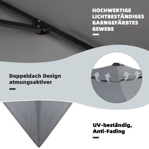 EROMMY Sonnenschirm 400 x 300 cm Terrassenschirm, mit 8 Aluminium Gestell 360° Drehbar Windsicherung neigbar mit Kurbelvorrichtung, rechteckig UV-Schutz, Garten Balkon, Grau