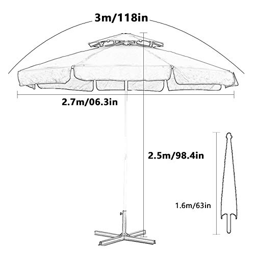 Abnehmbares Schirmtuch: Das Schirmtuch besteht aus verschlüsseltem Polyestergewebe, das robust und langlebig ist, UV-beständig ist und zur einfachen Reinigung und zum einfachen Austausch zerlegt werden kann.