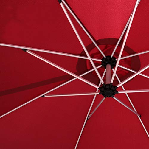 Der Durchmesser des Terrassenschirms beträgt 3 m. Das versetzte Design bietet Ihnen mehr Schattenraum, was vorteilhafter ist wie der herkömmliche Regenschirm!