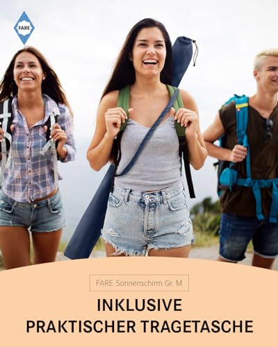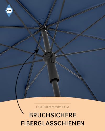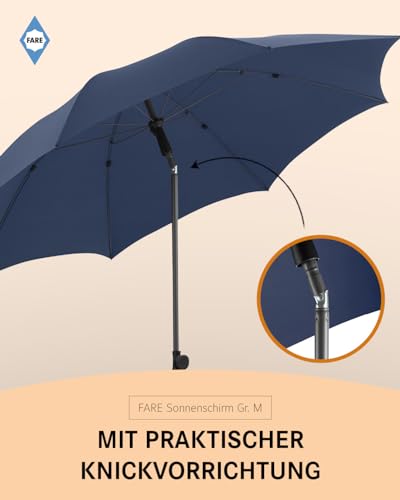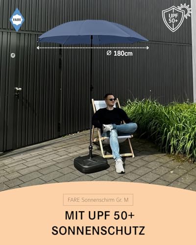 FARE Sonnenschirm Gr. M – 180 cm Durchmesser – UV-Schutz 50+ für Balkon Garten Terrasse Sommer – Titan-Finish Knickvorrichtung Drehfeststeller inkl. Tragetasche (nachtblau)