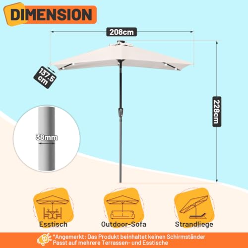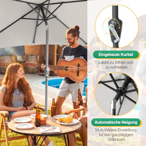 Fiqops Sonnenschirm 210×140 / 300x200cm mit Kurbel| Sonnenschirm Rechteckig Sonnenschutz UV50+ Knickbar, Ampelschirm Gartenschirm wasserdicht für Garten, Terrasse, ohne Ständer