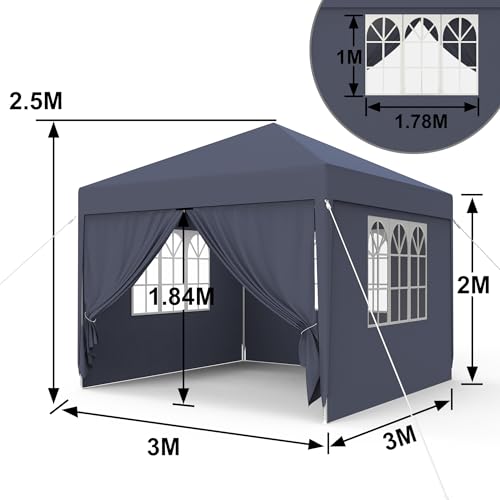 FIVMEN Pavillon 3x3m Partyzelt mit Seitenteilen und Fenstern Gartenpavillon Polyester UV Schutz Wasserdicht Windschutz Gartenzelt Zelt Outdoor, Anthrazit