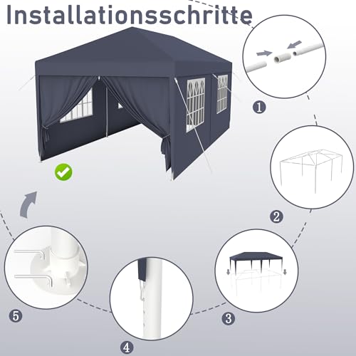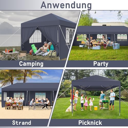 Ideal für Outdoor-Veranstaltungen mit großem Fassungsvermögen – Dieser Pavillon ist ideal für den Einsatz im Freien, sei es im Garten, auf Partys, Hochzeiten oder Marktständen. Mit einer Kapazität von 8-10 Personen bietet er ausreichend Platz und ist dadurch der perfekte Begleiter für Veranstaltungen im Freien.
