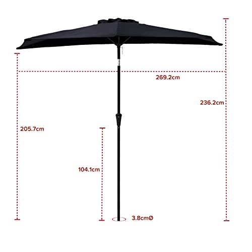 Flame & Shade hat sich einen beneidenswerten Ruf zugunsten Qualität und Kundenservice geschaffen. Dieser halbrunde 275 cm große Sonnenschirm zugunsten den Garten ist ganz robusten und langlebigen pulverbeschichteten Metallteilen hergestellt, die den härtesten Elementen standhalten. Das hochwertige 200 g/m² lösungsgefärbte Polyestergewebe ist speziell behandelt, um die Ausbleichwirkung bei längerer UV-Strahlung zu minimieren. Das Vordach lässt sich leicht öffnen und Abstrahieren durch das einfach zu bedienende Kurbelsystem. Mit einer praktischen Kippfunktion mit Druckknopf, die hilft, den Winkel des Schirms mit Leichtigkeit einzustellen. Sie werden leistungsfähig entspannte Zeiten darunter diesem Regenschirm genießen.